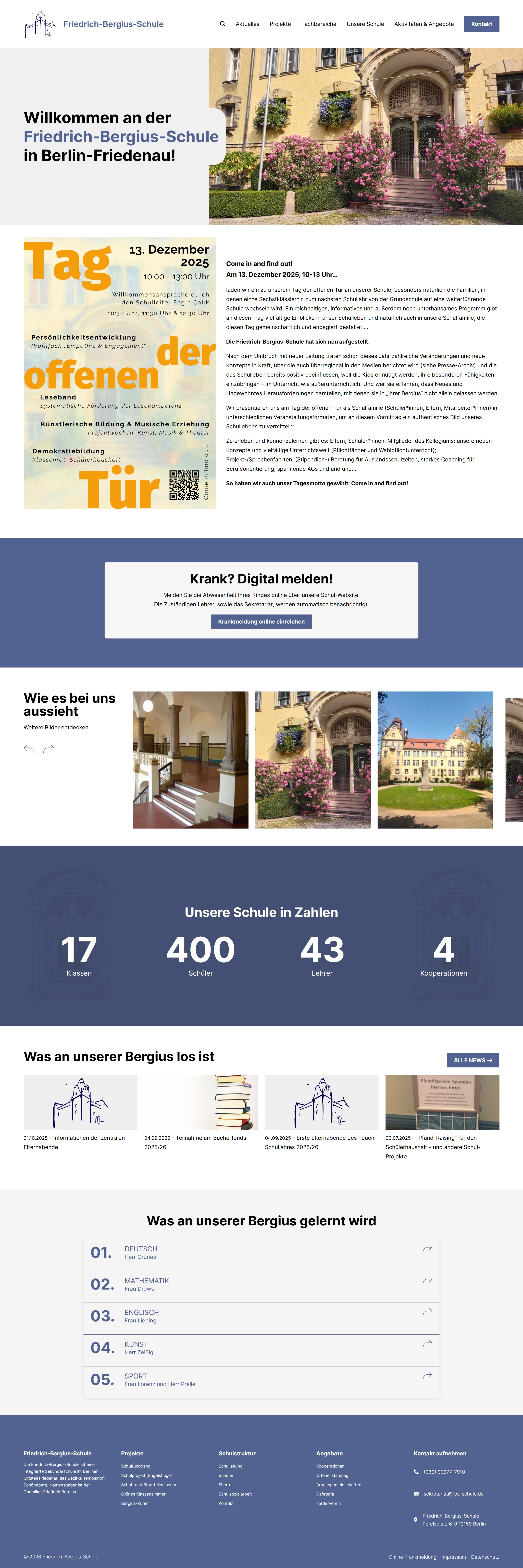 Die Friedrich-Bergius-Schule in Berlin-Friedenau hat sich neu aufgestellt – und das sollte auch ihre digitale Visitenkarte widerspiegeln. Wir durften den Webauftritt der Integrierten Sekundarschule nicht nur optisch auffrischen, sondern auch technisch gründlich aufräumen und neu strukturieren.